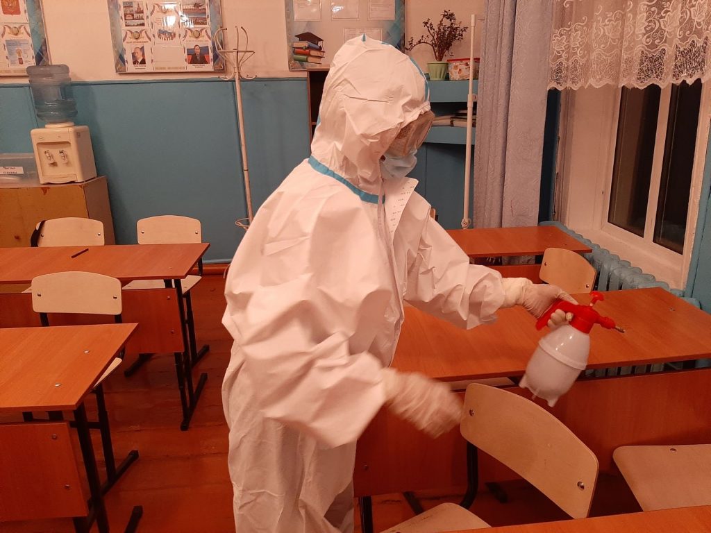 16 октября в МБОУ «СОШ №2 города Чадан» в условиях пандемии COVID-19 по согласованию с Чаяаном Кежик-ооловичем, врачом-эпидемиологом Дзун-Хемчикского кожууна, проведена дезинфекция кабинетов, коридоров, туалетов и спортзала школы.