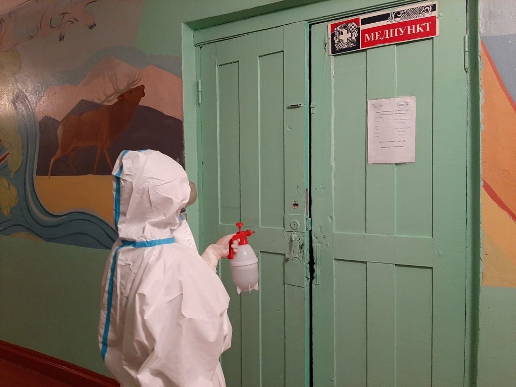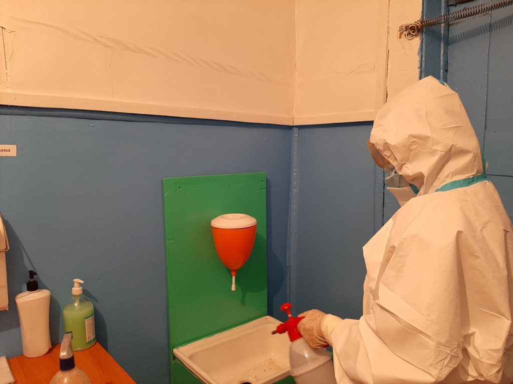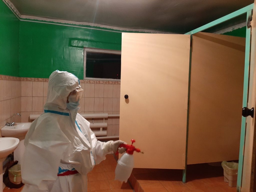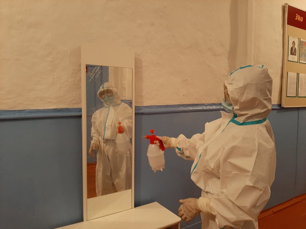 Дезинфекцию проводила фельдшер школы Чодураа Александровна.