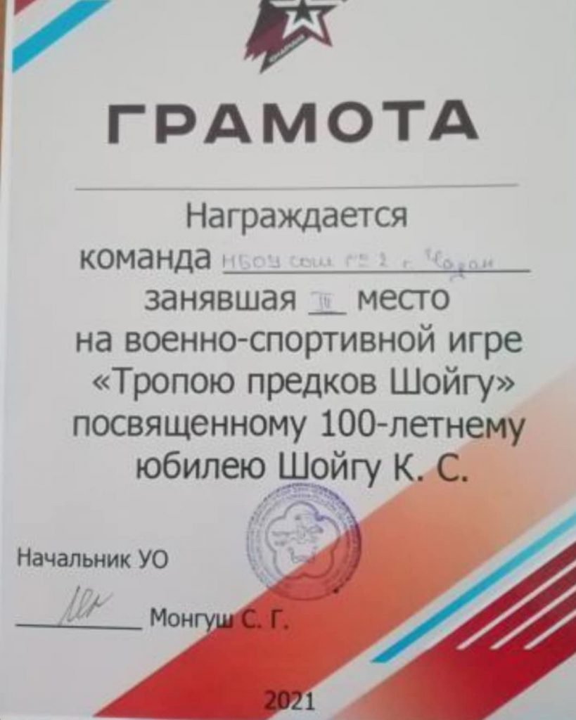 Без рубрики / Юные патриоты МБОУ «СОШ #2города Чадан» достойно представили свою школу) в копилку достижений школы-очередная грамота🥳🥳🥳