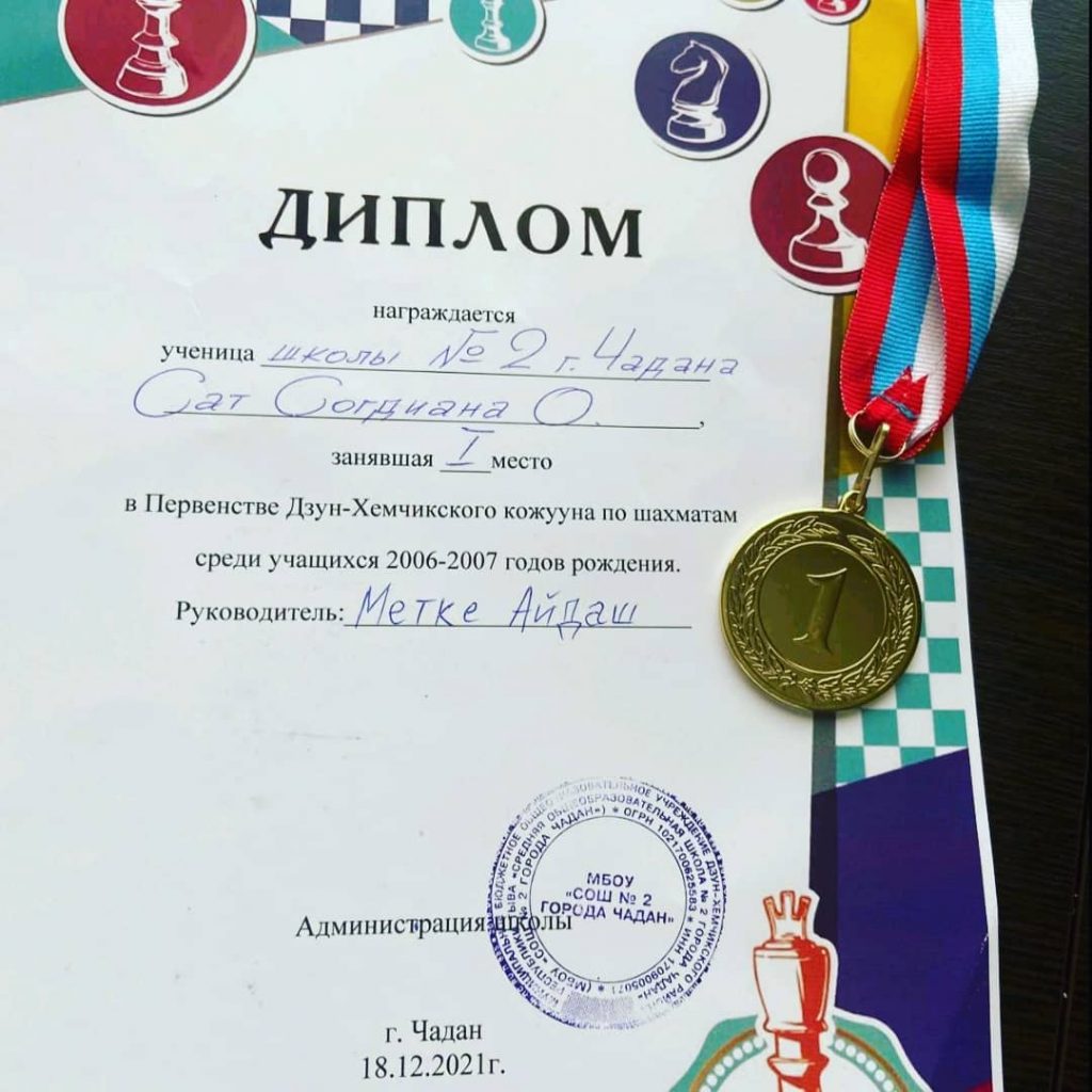 1 место 🥇-Сат Согдиана, ученица МБОУ СОШ#2 г.Чадан,