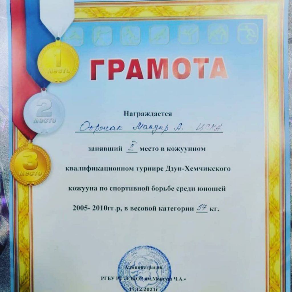 Ооржак Маадыр занял 2 место в весовой категории 57 кг., Кудерек Ооржак занял 3 место)