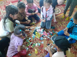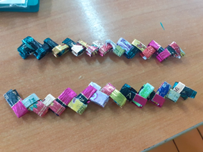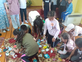 В лагере прошел День фантика. Конкурсно-игровая программа «День фантика» доставила детям много радости и удовольствия. Ребята на протяжении всего мероприятия выполняли различные задания с фантиками: собирали и искали их пары, выкладывали сладкие дорожки, бегали и танцевали с конфетными обертками, отгадывали загадки и т.д. После развлекательных игр дети изготавливали поделки из фантиков: плетение браслетов. В результате 1 место занял 1 отряд «СССР», набравший 24 балла, 2 место – 3 отряд «Адидас» (22 балла), 3 место – 2 отряд «Энергия» (18 баллов).