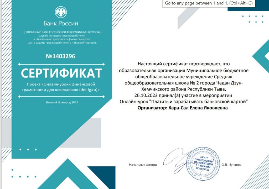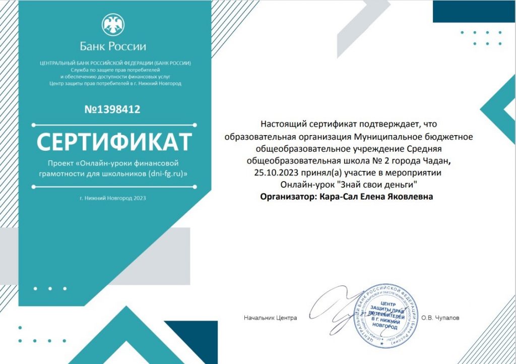 Онлайн-уроки финансовой грамотности сформировали у подрастающего поколения принципы ответственного и грамотного подхода к принятию финансовых решений, содействовали внедрению преподавания основ финансовой грамотности в образовательный процесс.