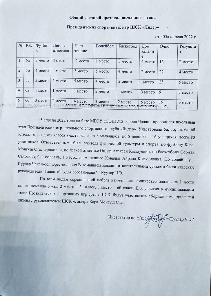 Школьный спортивный клуб «Лидер» -лицензия на осуществление образовательной деятельности по виду образования «дополнительное образование детей и взрослых» Скачать -приказ о создании ШСКСкачать -положение о ШСКСкачать -протокол съезда (конференции) о создании ШСКСкачать -устав ШСКСкачать Годовой-план-спортивных-мероприятийСкачать календарно-тематический-план-шскСкачать годовой-план-шскСкачать Полож.-откр.-и-справка-8-11-клСкачать Положение-турслета-2023Скачать справка-турслет-2023Скачать