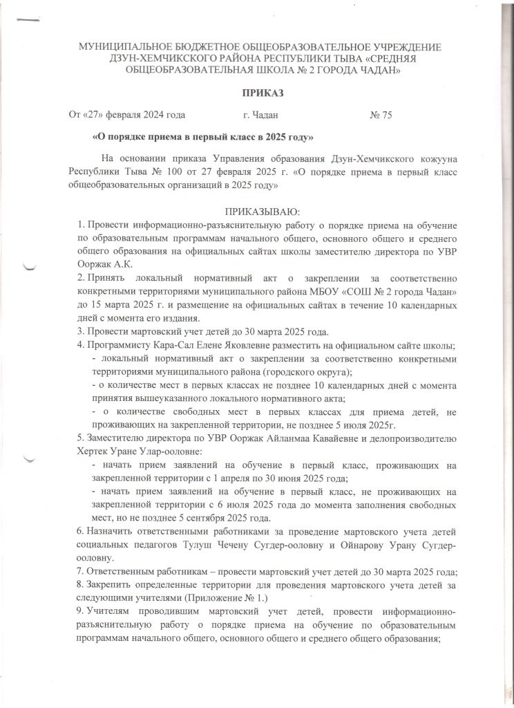 - С 01.04.2025 года по 20.06.2025 г. производится запись детей в 1 класс на 2025-2026 учебный год закрепленных по микрорайону школы.